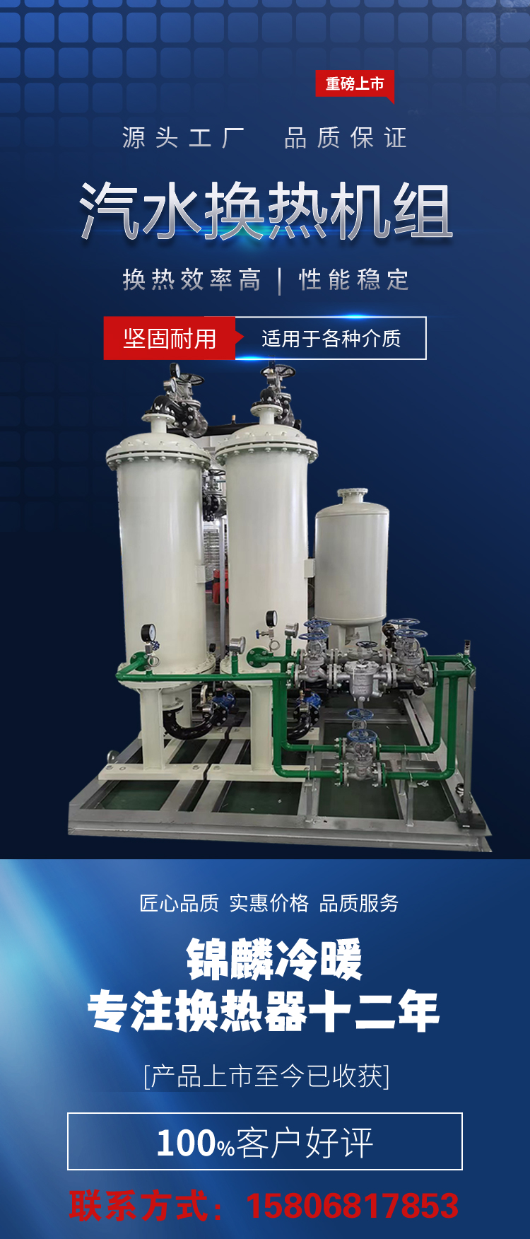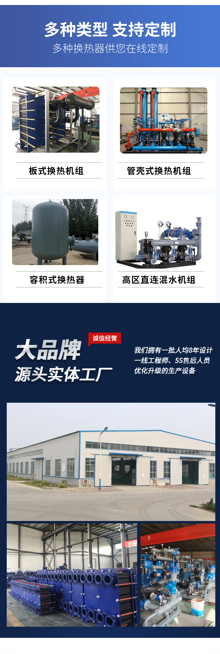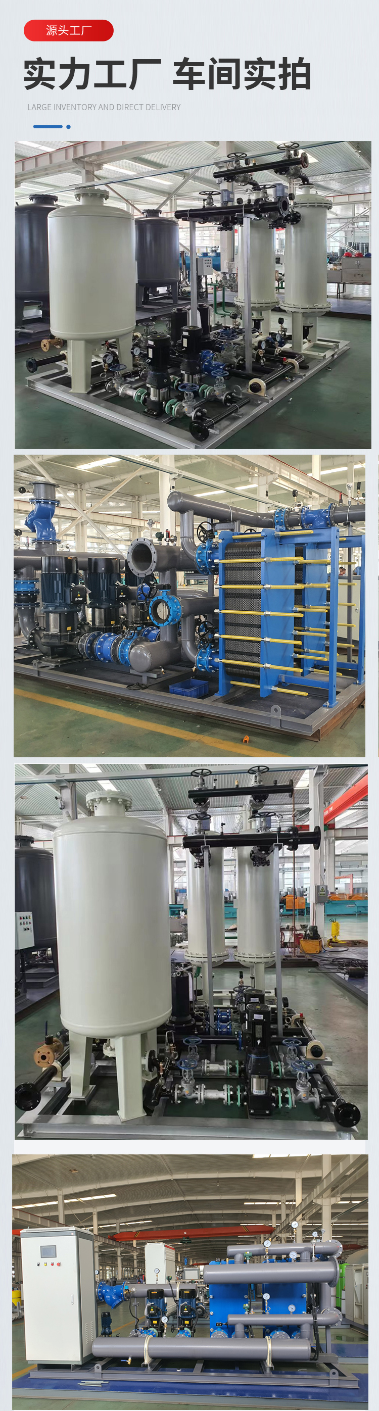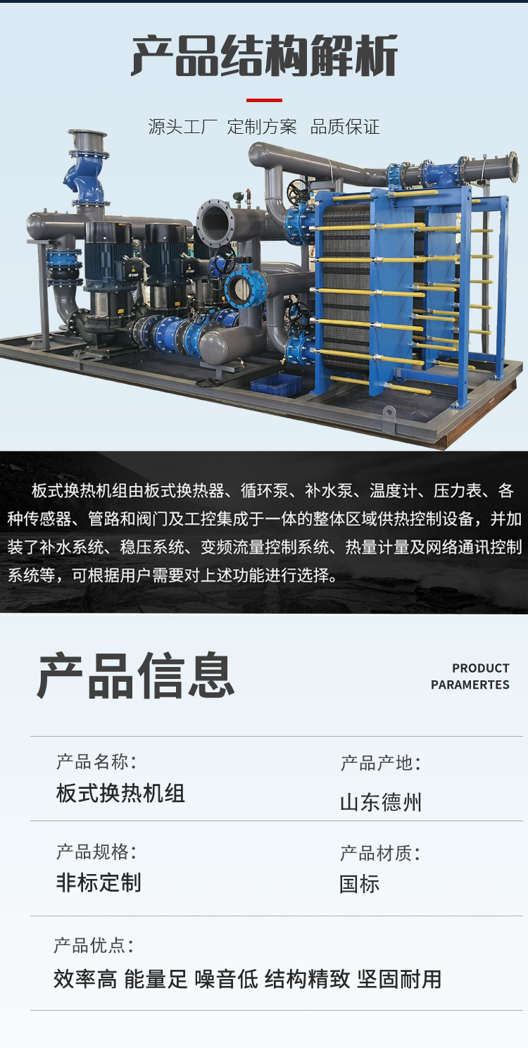 公司長期供應(yīng)定制:換熱器、換熱機組、供水設(shè)備、水處理設(shè)備、過濾除污設(shè)備、水箱、冷卻塔及其他冷暖設(shè)備。公司致力于以政府機關(guān)、企業(yè)、商場、醫(yī)院、學(xué)校、家庭為一體,提供一站式冷暖/水處理項目解決方案。