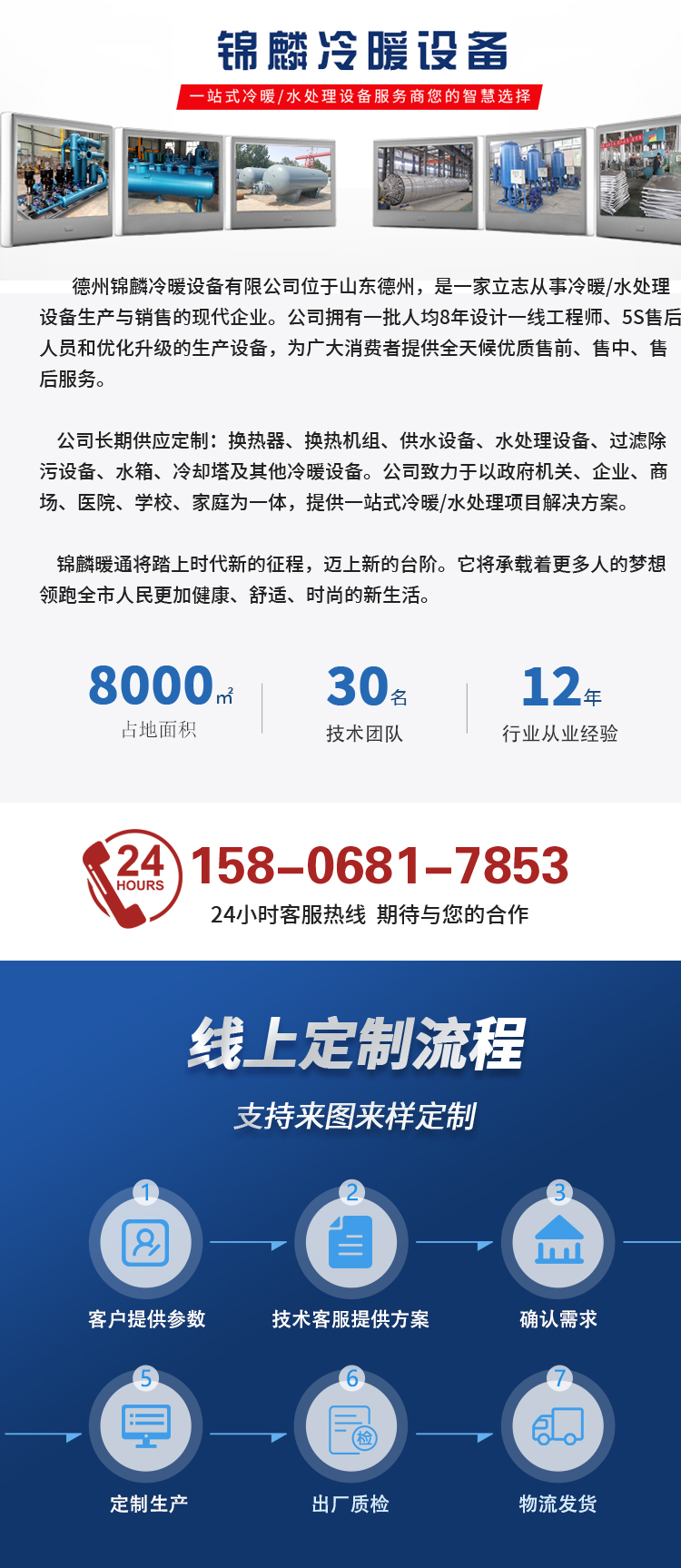 德州錦麟冷暖設(shè)備有限公司位于山東德州,是一家立志從事冷暖/水處理設(shè)備生產(chǎn)與銷售的現(xiàn)代企業(yè)。公司擁有一批人均8年設(shè)計一線工程師、5S售后人員和優(yōu)化升級的生產(chǎn)設(shè)備,為廣大消費者提供全天候優(yōu)質(zhì)售前、售中、售后服務(wù)。