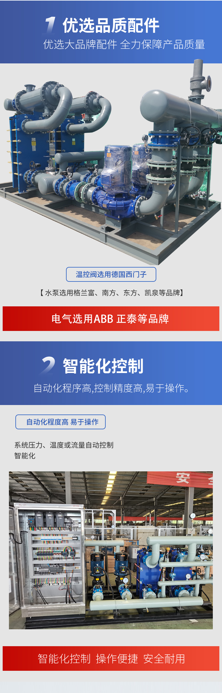 公司長期供應(yīng)定制:換熱器、換熱機(jī)組、供水設(shè)備、水處理設(shè)備、過濾除污設(shè)備、水箱、冷卻塔及其他冷暖設(shè)備。公司致力于以政府機(jī)關(guān)、企業(yè)、商場、醫(yī)院、學(xué)校、家庭為一體,提供一站式冷暖/水處理項(xiàng)目解決方案。